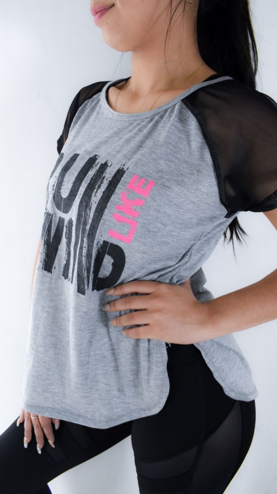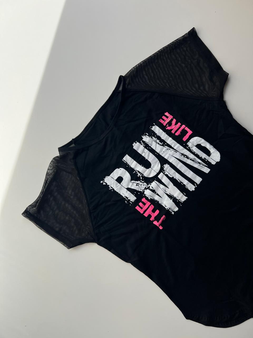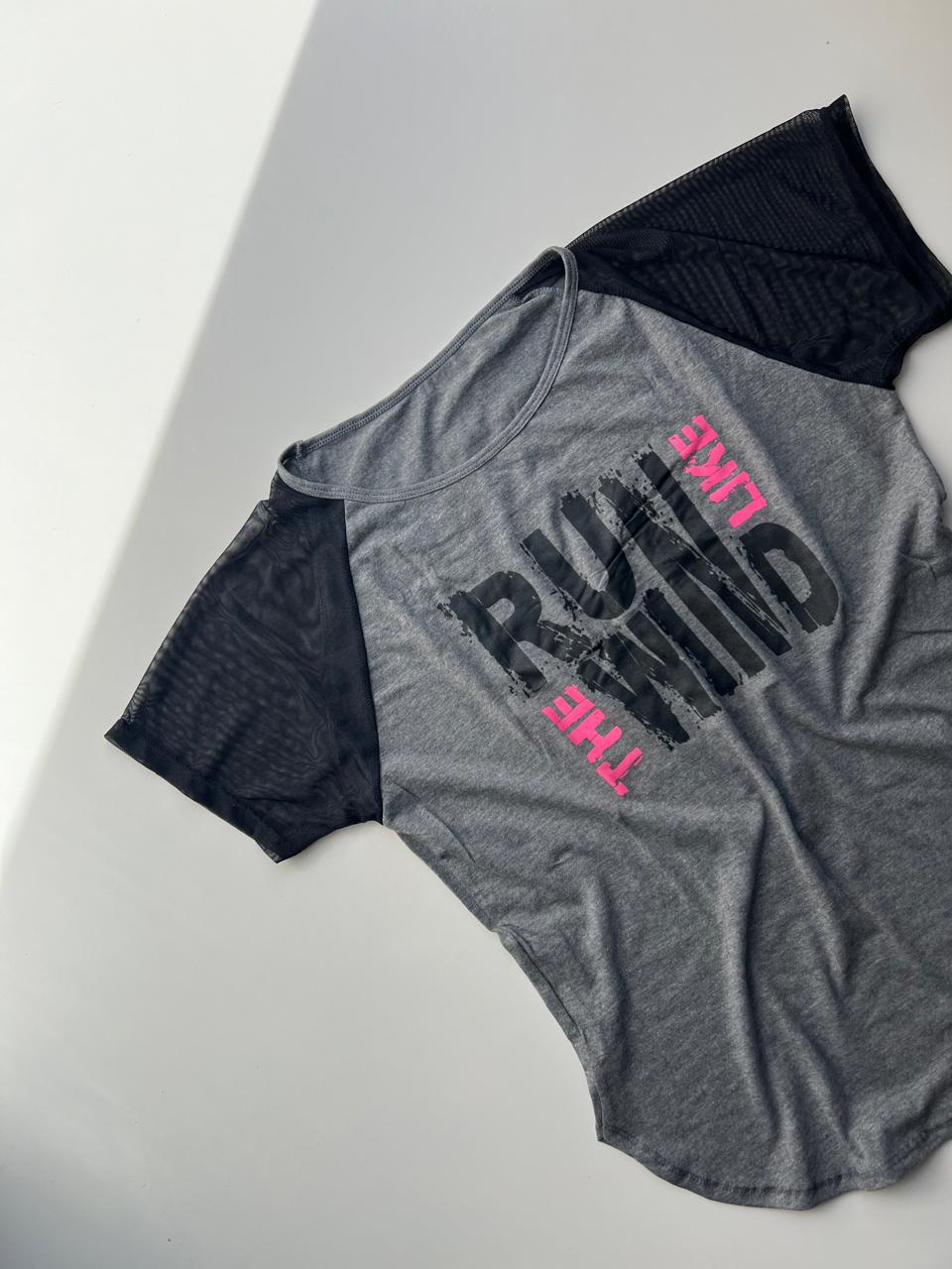 Nuestra remera deportiva de algodón con estampa y mangas de tul combina lo mejor del diseño urbano con un toque femenino y original.
