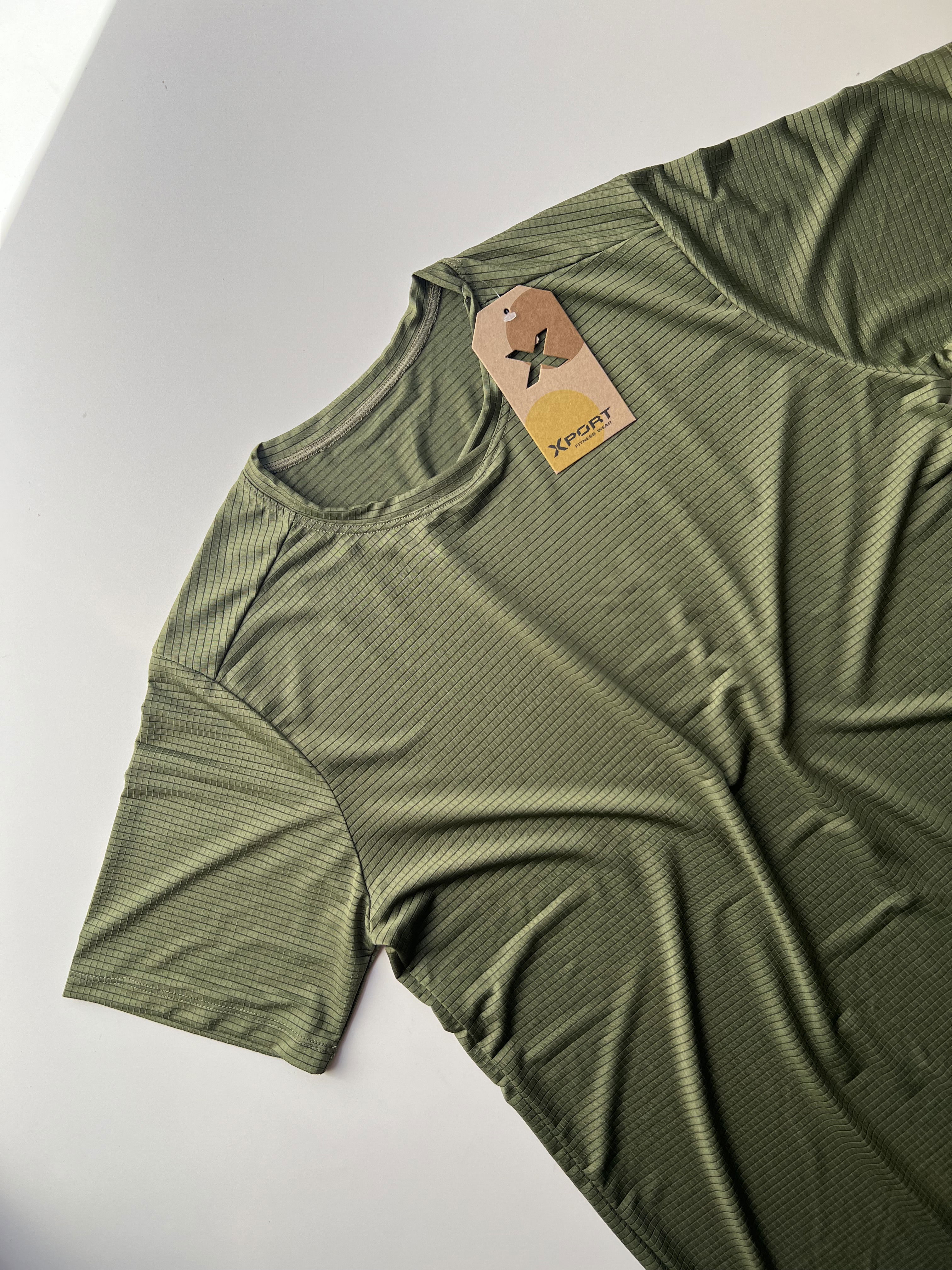 Diseño, frescura y rendimiento. Esta remera de hombre está confeccionada con una tela deportiva tipo cuadrillé que permite una excelente ventilación durante el entrenamiento. Su textura suave y liviana la convierte en la aliada ideal para el gym o el día a día.