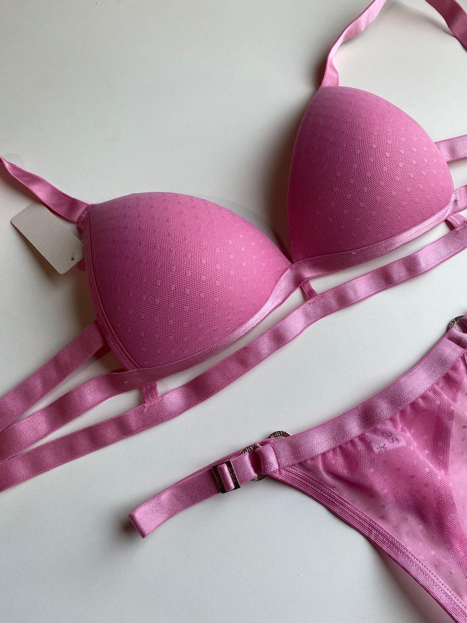 Un diseño que combina sensualidad, color y estructura ligera. El corpiño tiene taza soft sin aro, con un delicado tejido texturado y detalle de straps laterales que realzan la figura con un toque moderno. La bombacha está confeccionada en tul semitransparente con laterales regulables y elástico ancho, para un ajuste perfecto y cómodo. Este conjunto es ideal para quienes buscan una lencería llamativa, femenina y audaz.